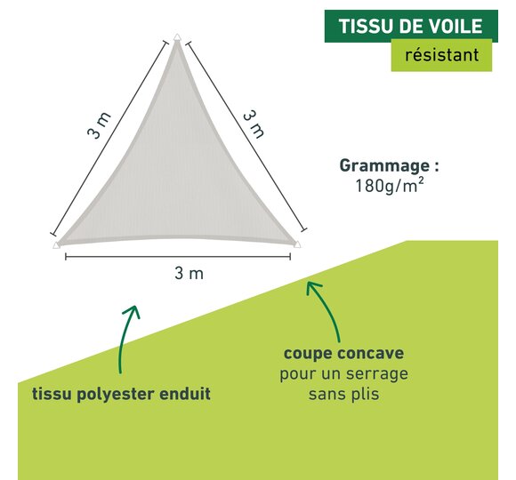 | 10711 | Voile d'ombrage polyester CANNES tri 3x3x3m gris | Voir |