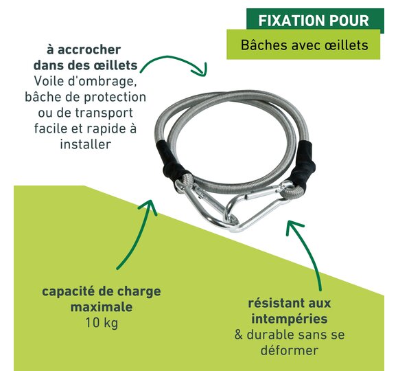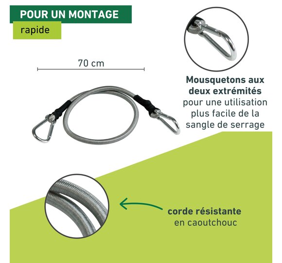- mousquetons aux deux extrémités pour un montage confortable et sûr