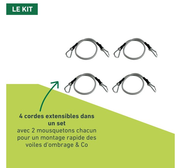 - set de 4 tendeurs (70 cm) et 8 mousquetons
