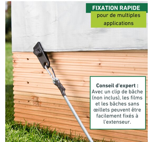 Accessoire utile pour tendre et décrocher rapidement les bâches, toiles et voiles solaires. Avec l’extenseur pratique, le montage devient un jeu d’enfant - il suffit de tendre, de crocheter, terminé.