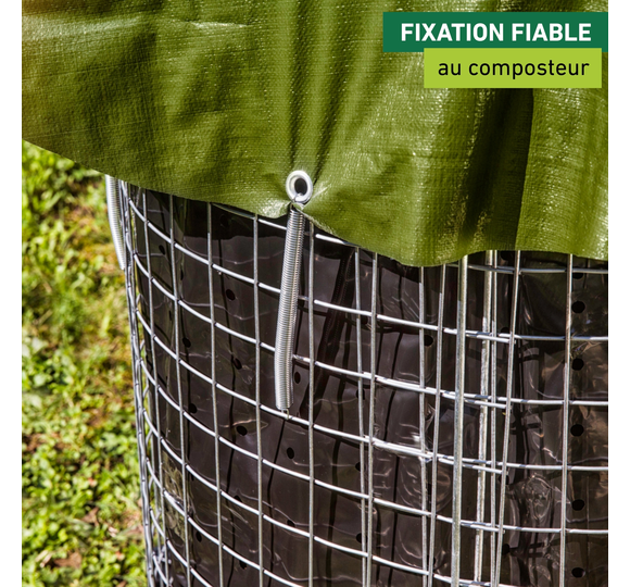 - PROTECTION OPTIMALE DU COMPOSTEUR - Le ressort de tension garantit un maintien sûr de la bâche sur la grille du compost