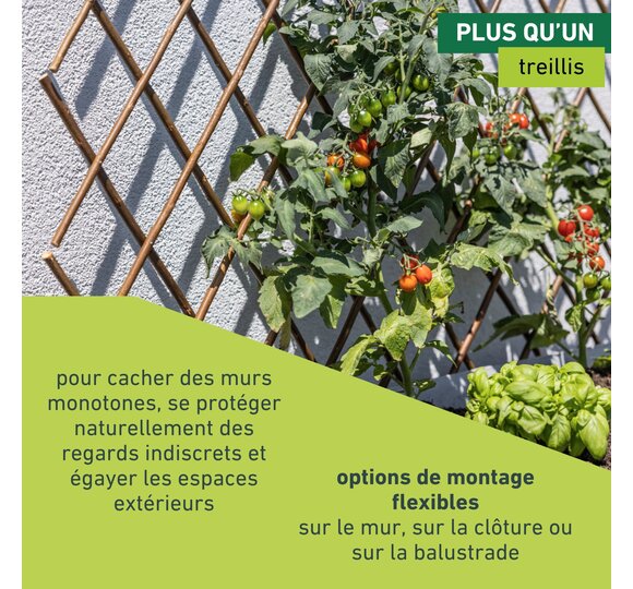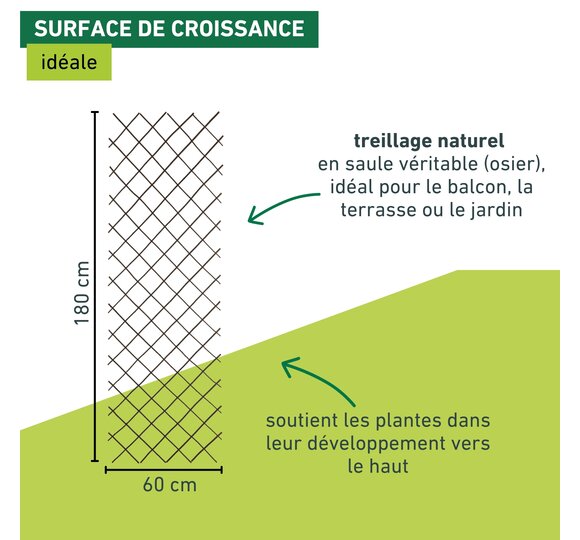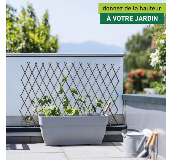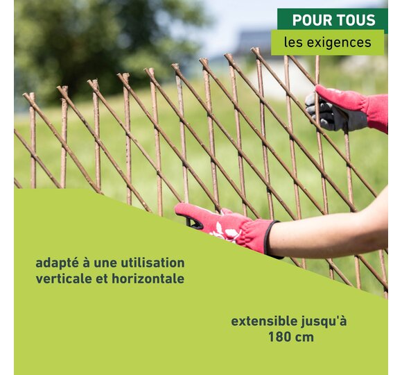 Il est l’allié parfait pour toutes vos plantes grimpantes. Ce treillage en osier naturel peut s’étendre jusqu’à 180 cm, tant en position horizontale que verticale. Il s’adapte donc facilement à la plante ou à l’espace disponible. Le treillis extensible en osier peut être fixé aux murs, aux clôtures ou aux balcons pour offrir plus d’intimité et de sécurité grâce à une végétation ornementale dense