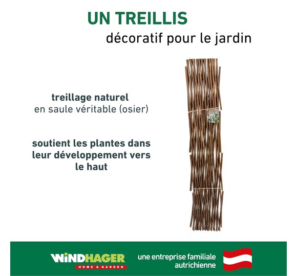 Pour cacher les murs monotones de la maison ou comme protection naturelle contre les regards indiscrets sur la terrasse et le balcon, les plantes ornementales grimpantes offrent d’innombrables possibilités. Pour les soutenir de manière optimale dans leur croissance, rien de tel qu’un treillage décoratif, comme le treillage en osier extensible de Windhager.