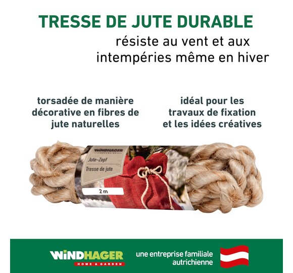 - TRESSE ROBUSTE – La tresse de jute Windhager est durable et réutilisable