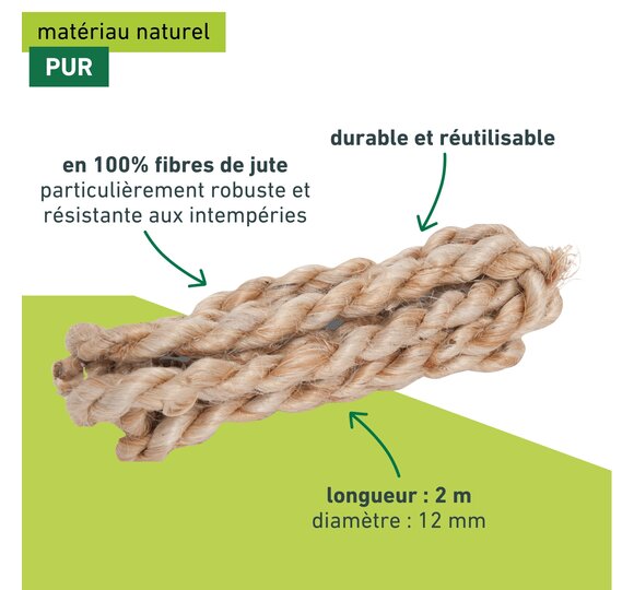 Tresse de jute décorative en fibres naturelles particulièrement qui résistent aux intempéries.