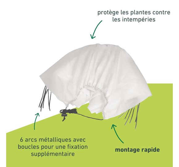 - 6 arceaux métalliques avec boucles pour une meilleure fixation