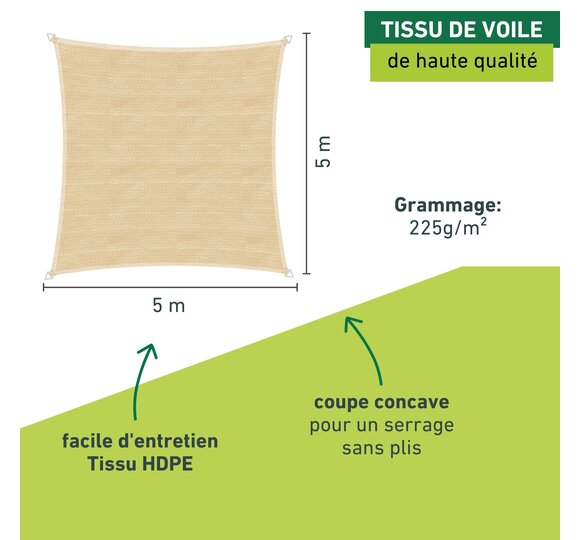 10754 Voile d'ombrage Hdpe CAPRI carré 5x5m champagne Voir