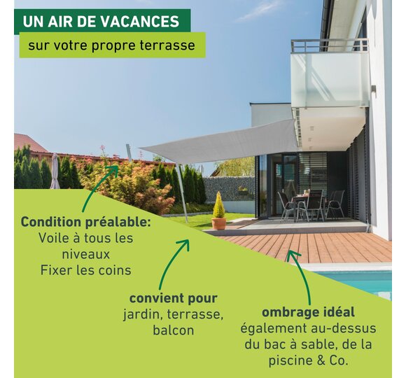 Le soleil apporte lumière et chaleur, parfois un peu trop. Il y a des moments où l’ombre est tout simplement plus agréable : lors d’un repas convivial entre amis sur la terrasse, le temps d’une pause sur le balcon l'après-midi, ou encore en vacances en camping. Les voiles d'ombrage qui se déploient facilement sont idéales pour cela.