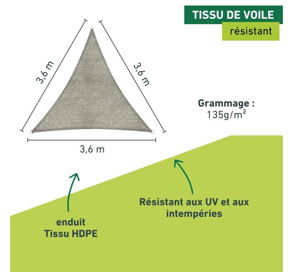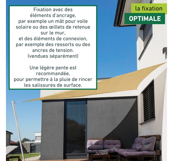 Disponibles en différentes couleurs et formes, vous trouverez ici une large gamme de voiles d'ombrage. Elles sont fabriquées en HDPE, qui laisse passer l'air et l'eau, ce qui évite l'accumulation de chaleur, ou en toile de polyester enduite, qui résiste au vent, à l'eau et aux salissures. Des kits de montage spéciaux et de nombreux accessoires permettent une installation personnalisée et une utilisation confortable de la voile d'ombrage.