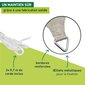 Das Sonnensegel ELBA ist ein pflegeleichtes HDPE-Gewebe, welches sich einfach reinigen lässt – entweder bei 30° in der Waschmaschine oder mit milder Seifenlauge. Diese wind- und wasserdurchlässige Ausführung hat den Vorteil, dass es unter dem Sonnensegel angenehm kühl bleibt, weil kein Hitzestau entsteht. Dazu fängt das Sonnensegel 85% der UV-Strahlen ab, lässt aber die angenehme frische Brise durch. Die verstärkten Säume sind bei einem Sonnensegel besonders wichtig, denn sie sorgen für einen festen Halt – und dafür, dass die Seiten auch bei Wind nicht reißen.