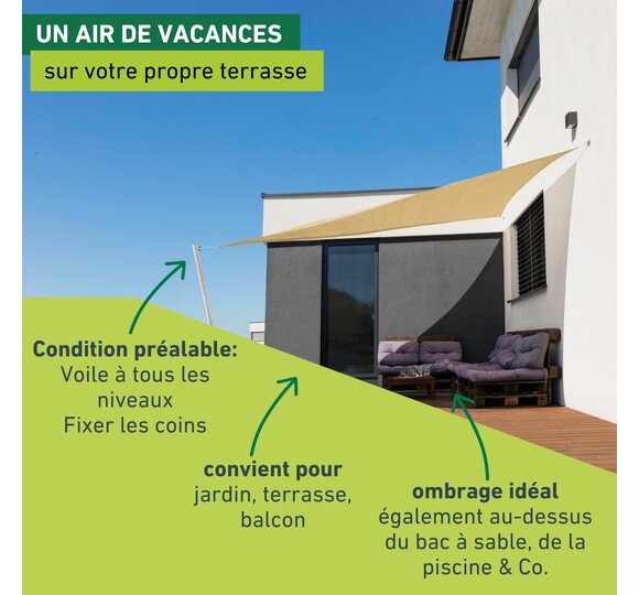 Le soleil apporte lumière et chaleur, parfois un peu trop. Il y a des moments où l’ombre est tout simplement plus agréable : lors d’un repas convivial entre amis sur la terrasse, le temps d’une pause sur le balcon l'après-midi, ou encore en vacances en camping. Les voiles d'ombrage qui se déploient facilement sont idéales pour cela.