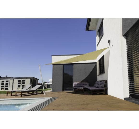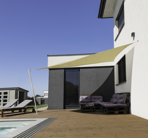 Wohltuender Schatten auf Terrasse, Balkon und im Garten wird mit steigenden Temperaturen immer wichtiger. Eine praktische Lösung hierfür sind Sonnensegel. Sie sind schnell und leicht zu befestigen, im Vergleich zu einer Pergola oder ähnlichem kostengünstig und können jederzeit wieder abgenommen werden. Sind die Verankerungen erst einmal angebracht, kann jederzeit ein Sonnensegel in einer anderen Farbe gespannt werden – für einen völlig neuen Look. Die sanften Farbtöne reflektieren die Sonne nicht so stark und blenden daher nicht.