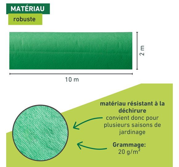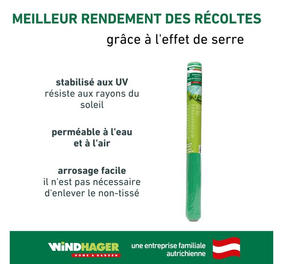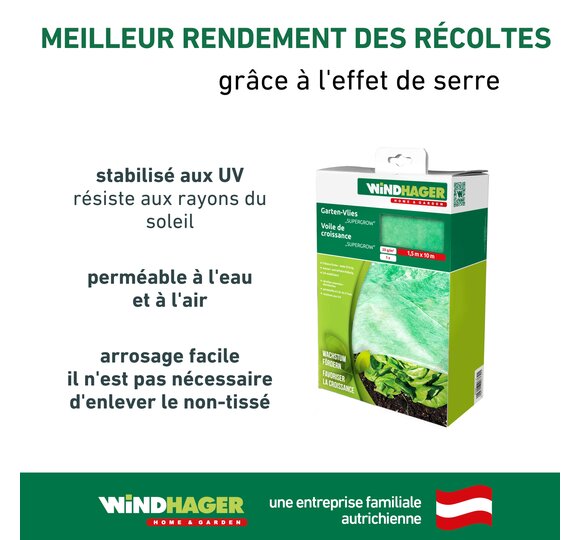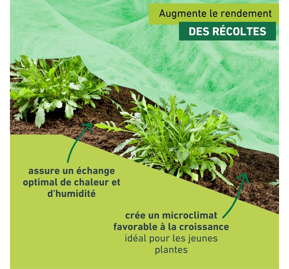 Le voile de croissance spécial assure un échange optimal de chaleur et d'humidité et contribue ainsi à la maturation plus rapide des plants. Le voile léger est particulièrement résistant et donc adapté à plusieurs saisons de jardinage.