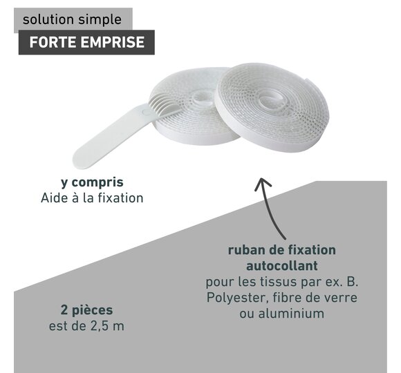 - ruban de fixation autocollant pour tissus en polyester, fibre de verre ou aluminium par exemple