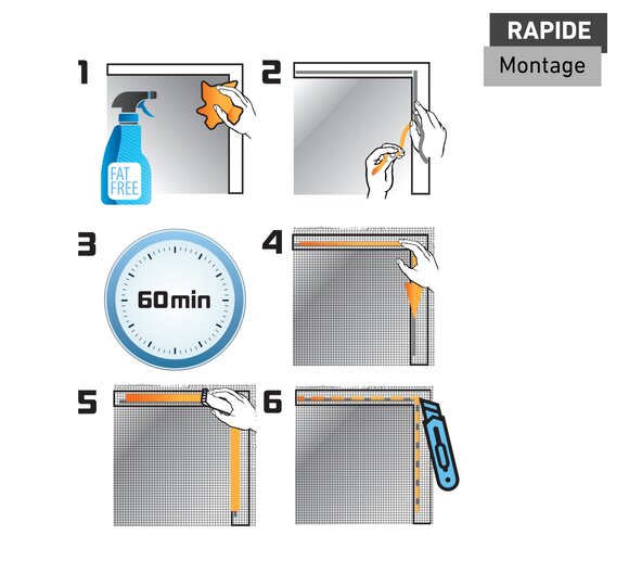 Cette bande haut de gamme fait de la pose d’une moustiquaire un jeu d’enfant : Coller la bande, couper le tissu, appuyer, terminé.